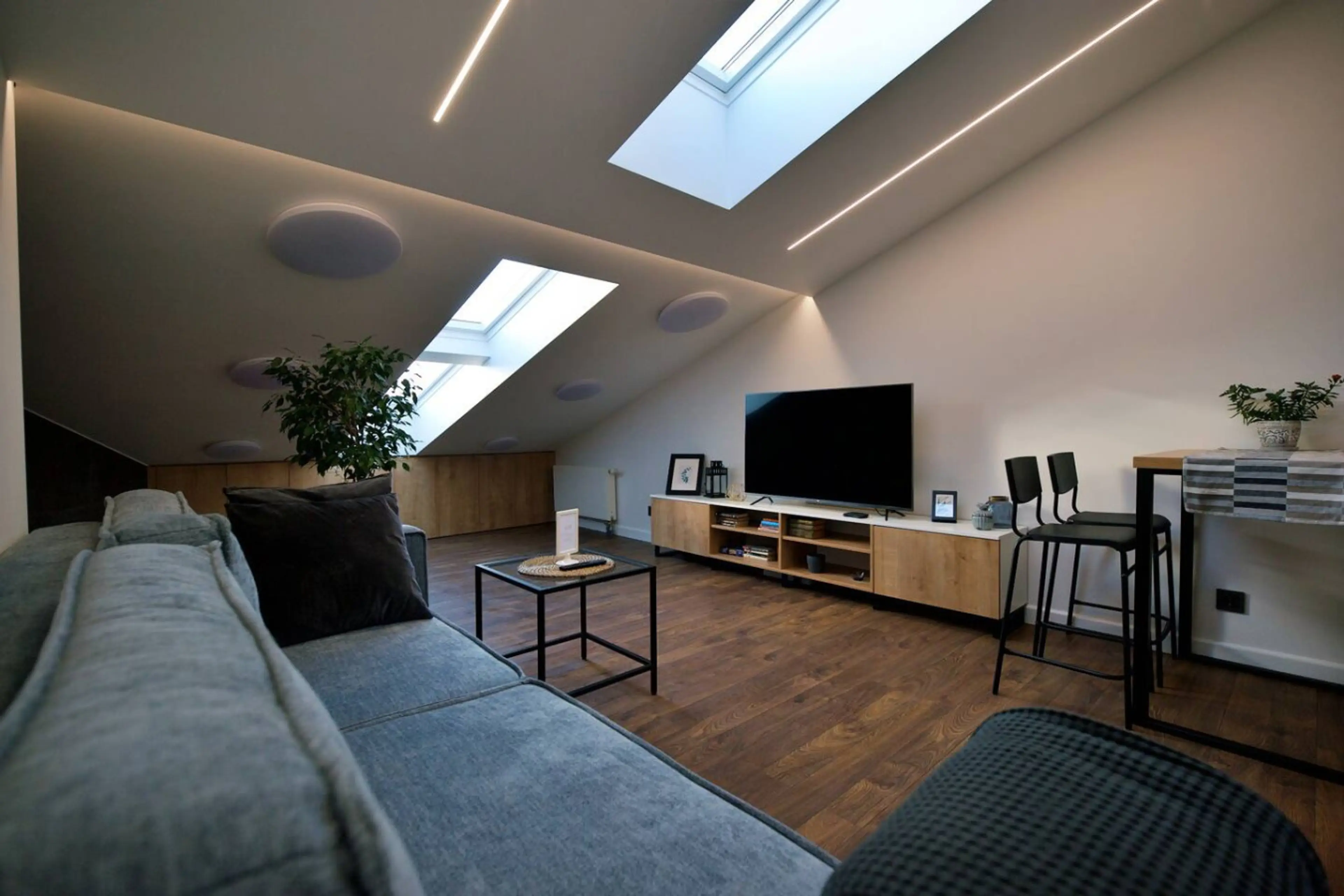 Negative: ”Fantastic view” oli täysin väärä kuvaus: kapea näkymä taivaalle kattoikkunasta , mihinkä kömpi katsomaan, ei ole mikään näköala. Surkea esitys näköalasta! ”Two floor” oli miniparvi parilla neliöllä, missä pöytä läppärille. Ei mikään paikka edes nukkua